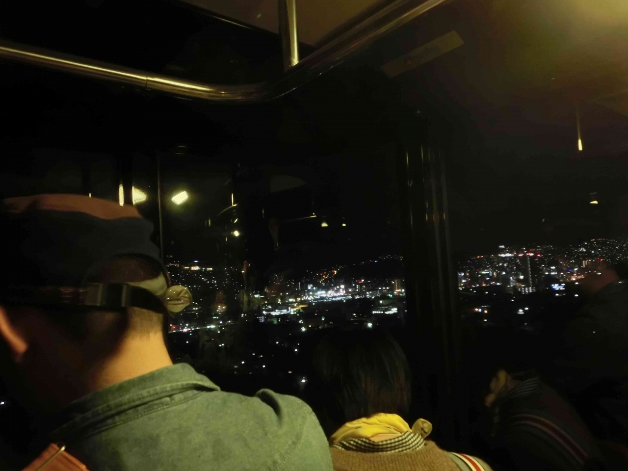 私の行った3月は乗れましたが、現在は、今年5月7日から来年(平成28年)2月5日までの予定で、耐震補強工事等のために運休しています。詳細は長崎ロープウェイのホームページに出てますので、ご注意を。