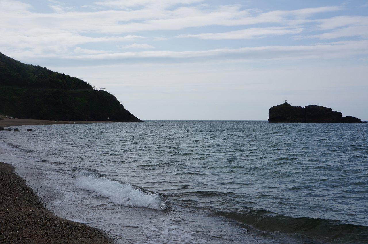 白い砂浜が弓なりに連なっており美しい海岸です。