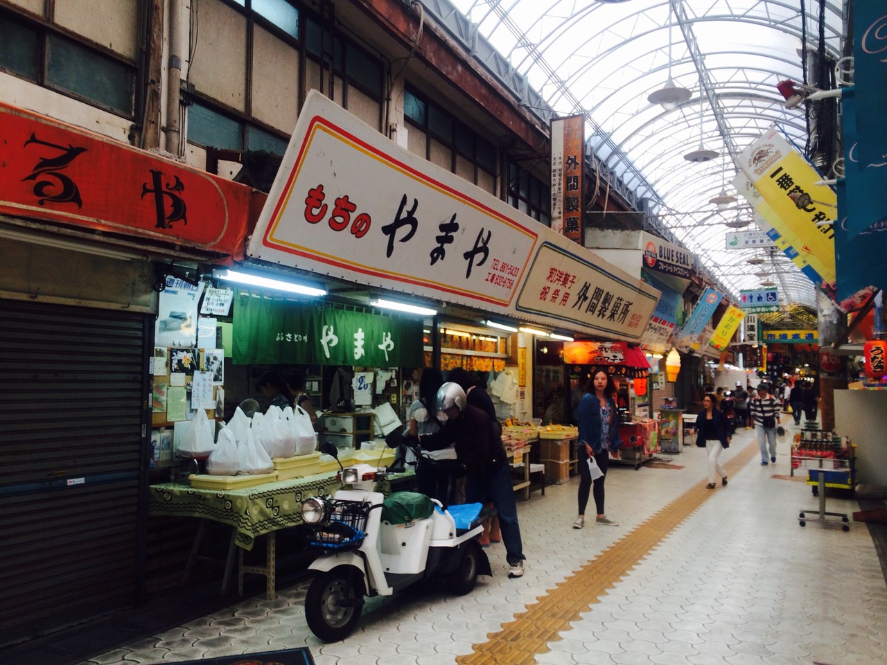 牧志公設市場の近くにある餅屋さんです。朝早くから空いているので便利です。月桃の葉っぱで包んだ「ムーチー」が有名ですが、ちょうど行った日が清明祭の日曜日で、丸餅ばかりでした。地元の方が次から次へとお供餅を買っていました。大福のようなお餅を買って見ました、こちらの大福と違い、ぎゅうひのようなプルプル感があり美味しかったです。
