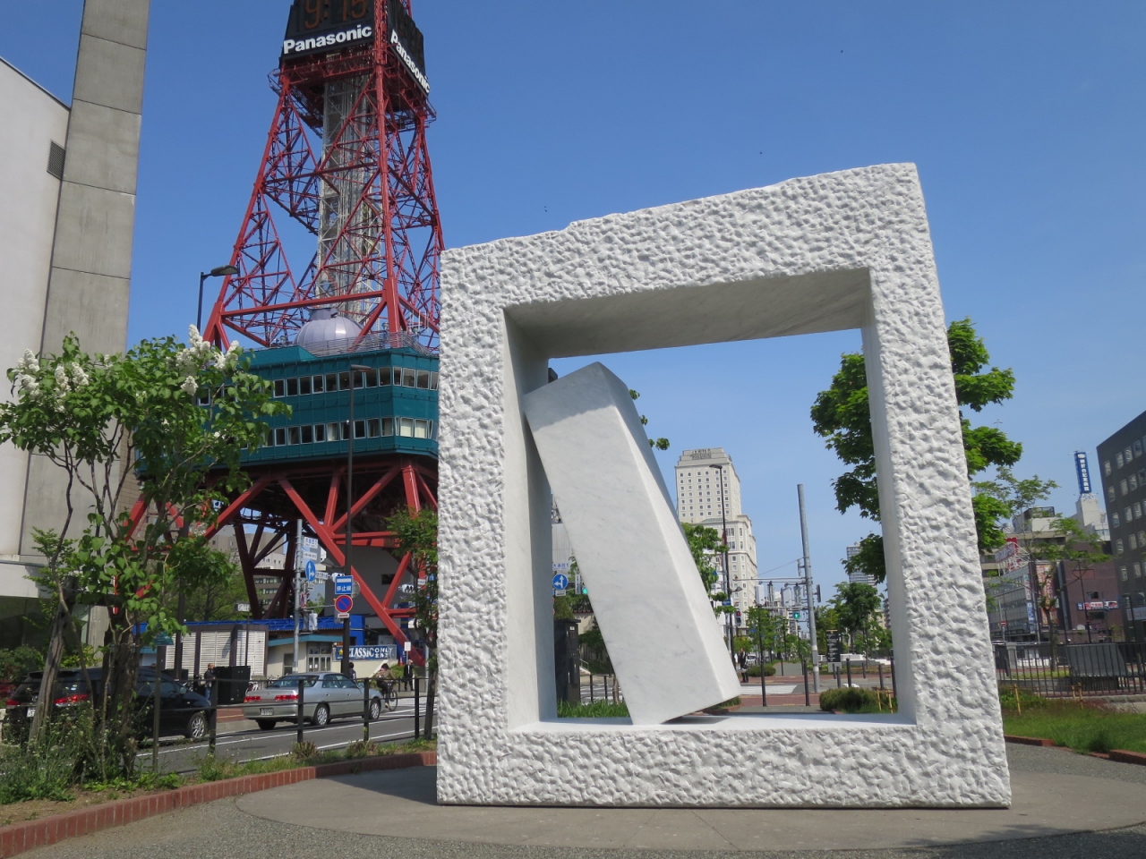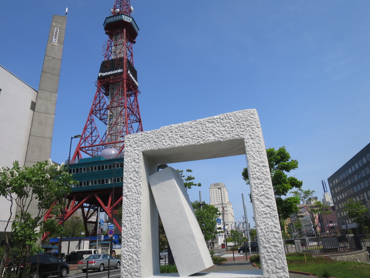 創成川沿いに整備された創成川公園の南1条のエリアにあります。彫刻家、安田侃氏の作品で公園が整備された2011年に設置されました。