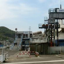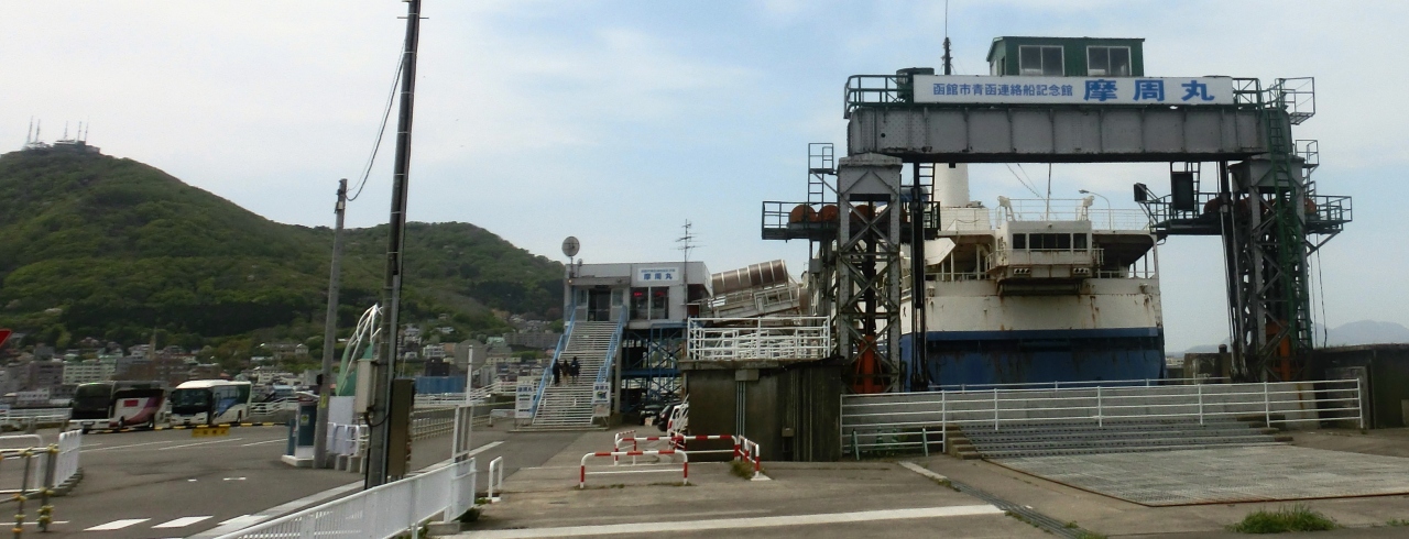 青函連絡船「摩周丸」が係留されている岸壁脇、駐車場の一角にある。