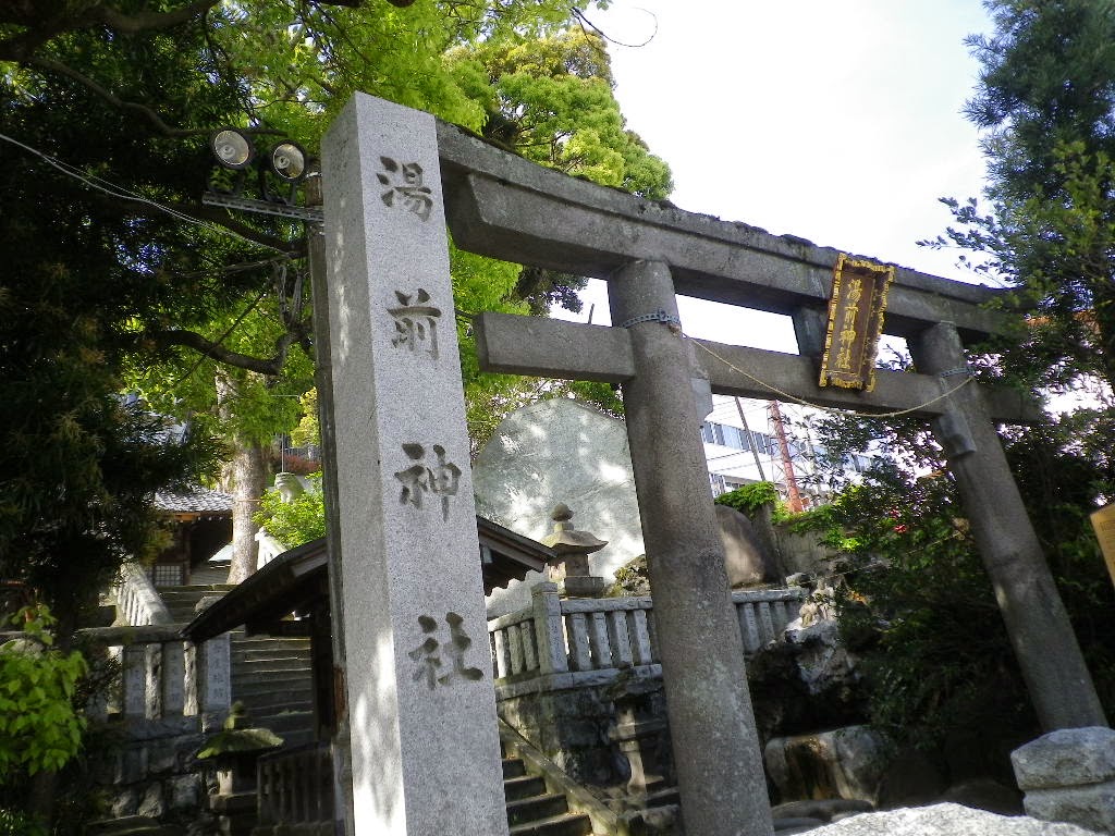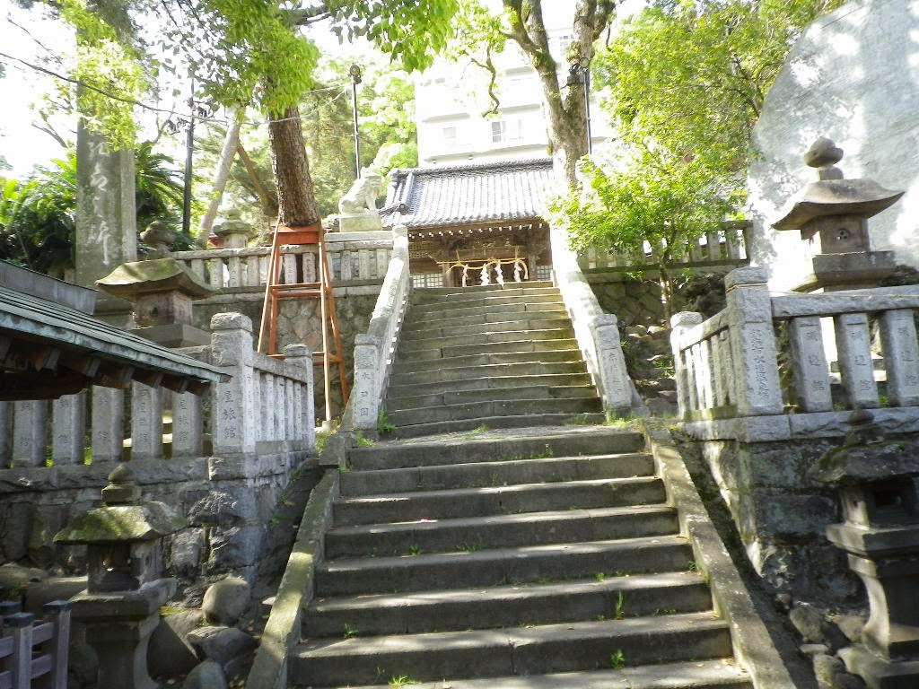 来宮神社にお参りした後、坂を下って歩いていると偶然見かけました。小さくて静かな神社でした。境内に温泉が湧いているのは流石に熱海というべきでしょうか。祭りの準備か、訪れた時は地元の方々の会議場となっていました。