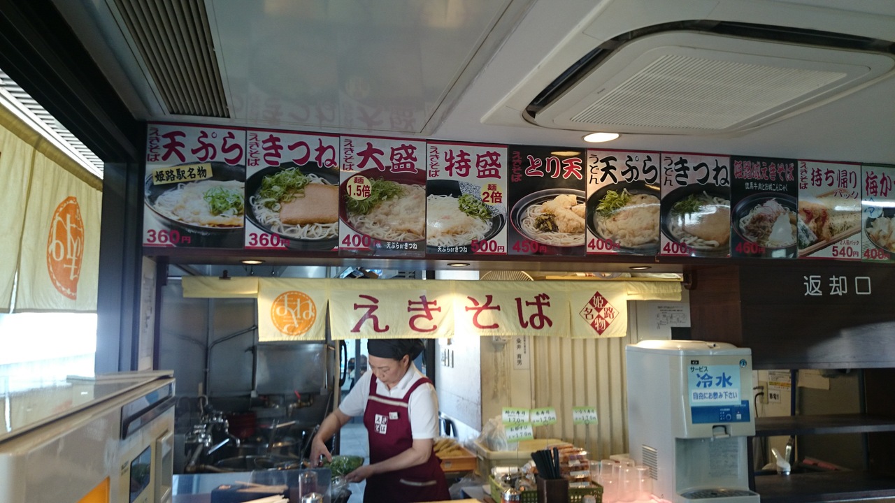天守閣に入れるようになった姫路城にも行きたいが、まずは駅のホームで恒例のまねきの駅そばを食べる。