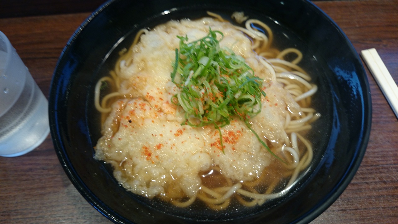 中華麺風の麺に具の少ない天ぷらは物足りないが、関西風出汁が最高。関東出身者には