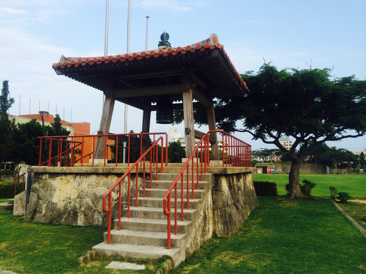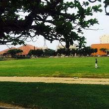 石垣市立図書館、市民会館や美崎町に隣接している公園。離島桟橋からも比較的近く、町の中心なので色々なイベントに使われています。繁華街にありながらとても広々としており朝はジョギング姿の人をみかけます、公園内には世界平和の鐘があり平和を訴えるイベント時には鐘が鳴らされるそうです。