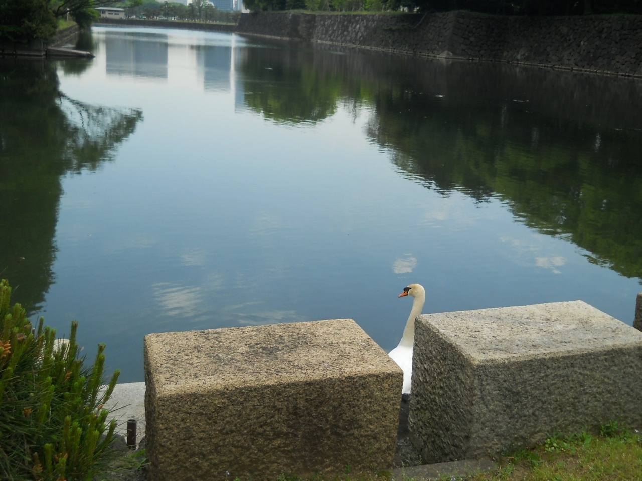 すみついているのか、橋の近くのお堀の石の上には白鳥さんが1羽。