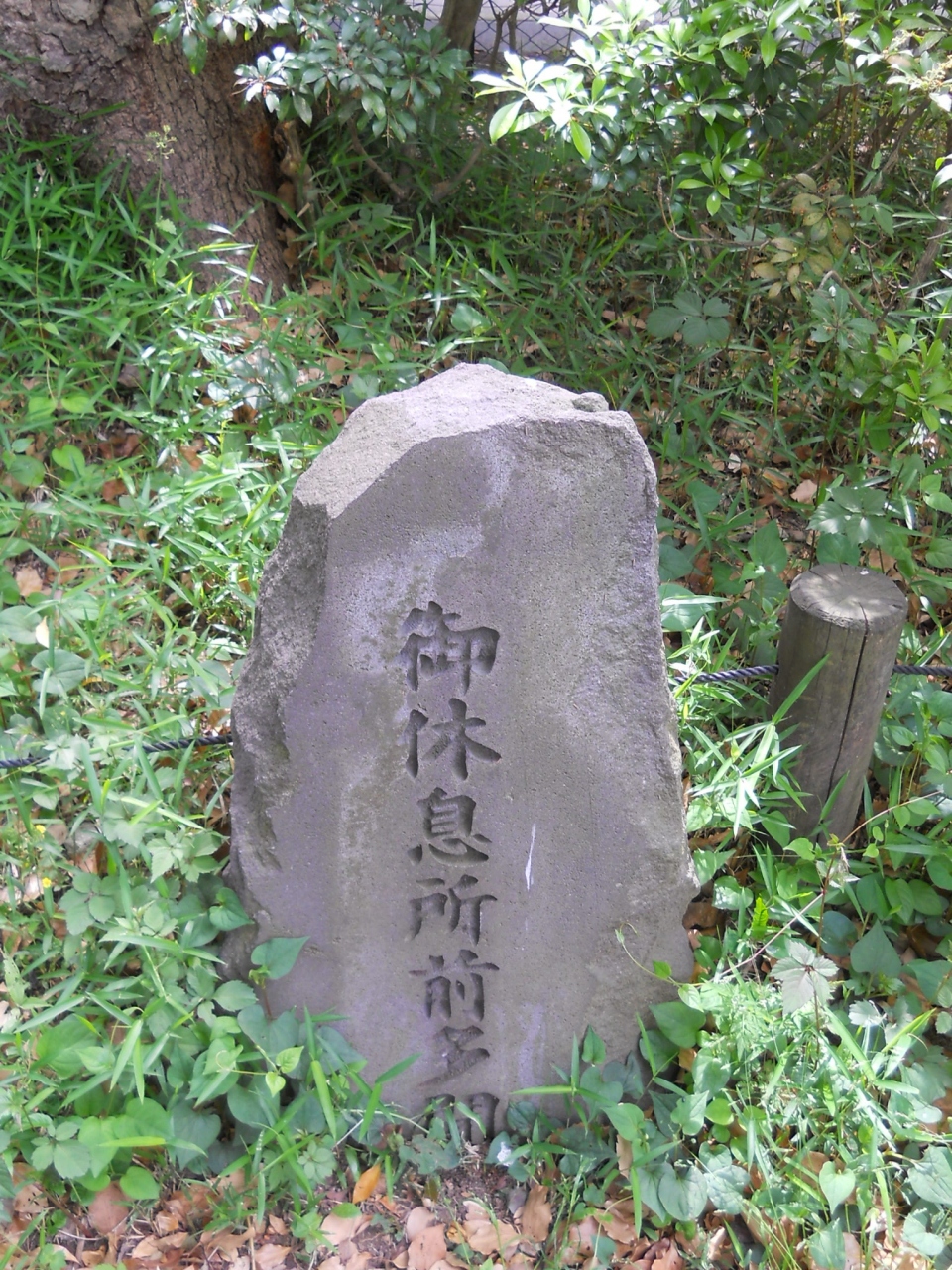 左の雑木林の間に入っていく小道の奥にあります。