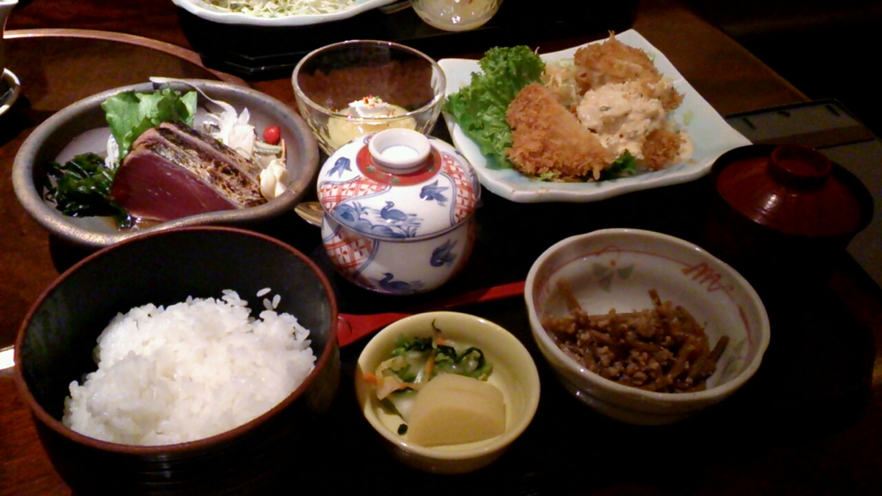 ランチメニューもあり、魚の刺身か鰹のたたきを選べます。
