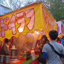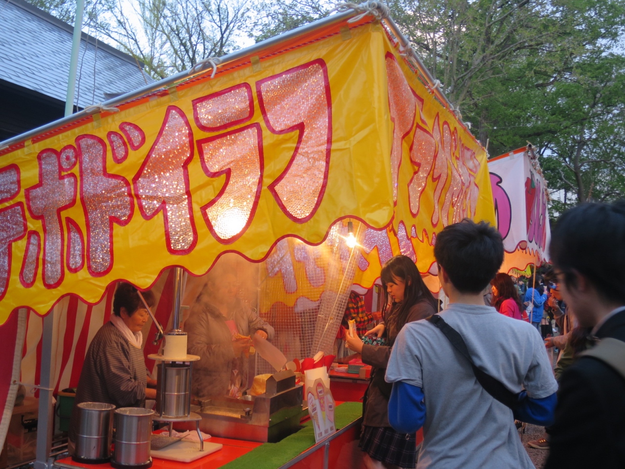 境内の駐車場スペースでは屋台が並び、夕方は地元の小中高生でいっぱいでした。境内の駐車場は10台ほどしか止められるスペースがありませんでしたが、駐輪場が設けられ、たくさん自転車が止まっていました。
