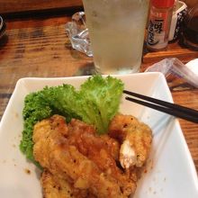 リバレインウォークで訪問。ドリンク二杯に、ポテトサラダ、ピリ辛鳥天で1000円の内容。鳥天が絶品でお酒が進みます。