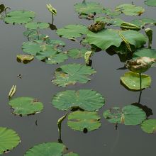 不忍池の蓮池では新しい蓮が水面に出始めていました。夏には人の背丈ぐらいの高さになる蓮ですが、今はまだ葉が水面に張り付いているか、少し水面に巻いた葉が出ている状態でした。向こうの方まで湖面が緑で覆われ始めていてきれいでした。