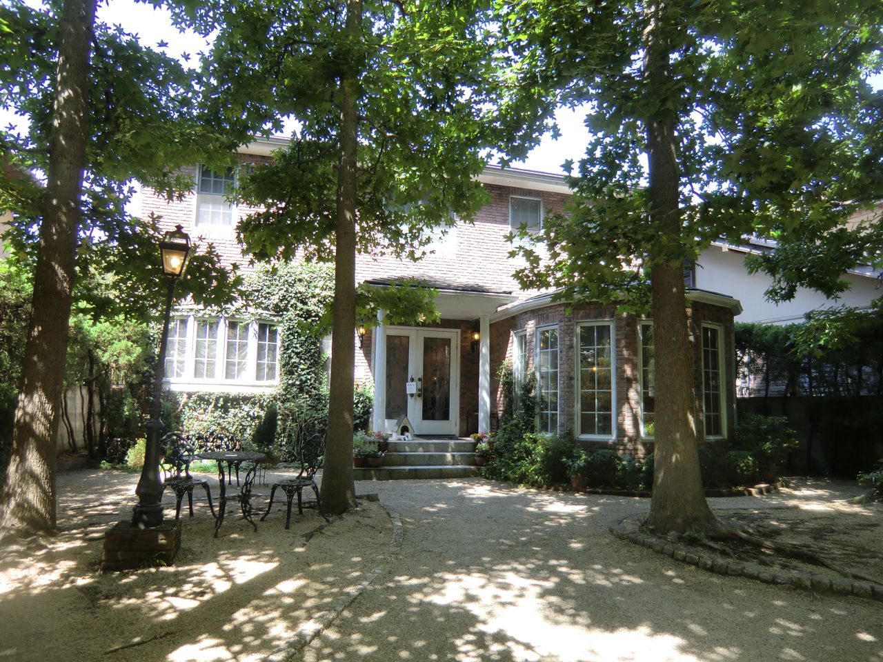 きれいな白い洋館ですが、木立の中にあるのでちょっと日陰。
