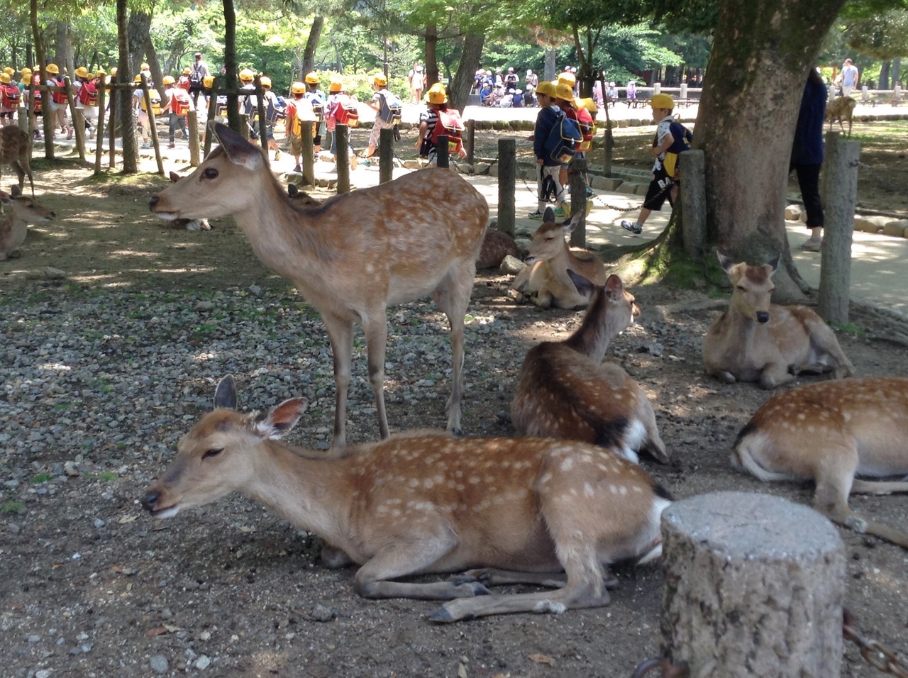 ただ、危ないなぁと思ったことがあるのですが、オスの鹿の角は切られてはいるものの、切ったところから新たに角がはえている鹿が結構いるのです。その鹿がせんべいめがけて攻撃態勢で角で襲ってくるのですが、普通に旦那は刺されていましたwめちゃめちゃ痛いそうで、これが子供に・・・だったら目とかに刺さりそうで怖いなぁと思いました。