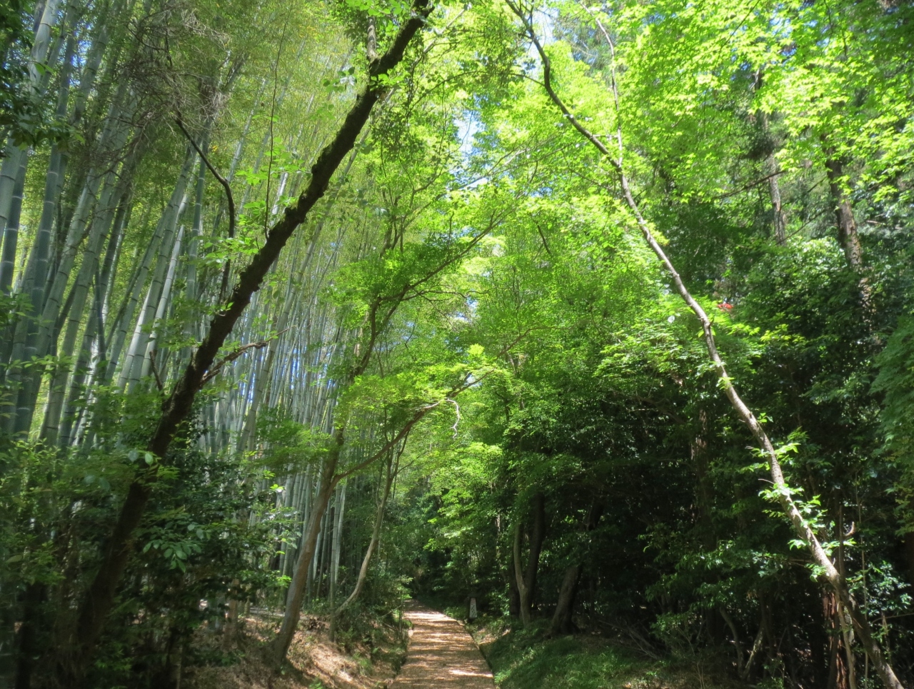 仁王門から続く参道は青竹と新緑に包まれた、なんとも心地良い道。