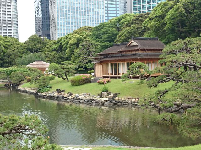 海水を引き入れた潮入の池が珍しく、都内で現存するのはこの庭園のみだそうです。広大で緑多く素晴らしい日本庭園を楽しめます。周りには高層ビルが建ち並び、何とも言えない雰囲気を醸し出しています。入口で専用の携帯端末ガイドを、無料で貸出してくれていました。見どころに着くと、自動で解説してくれ便利でした。