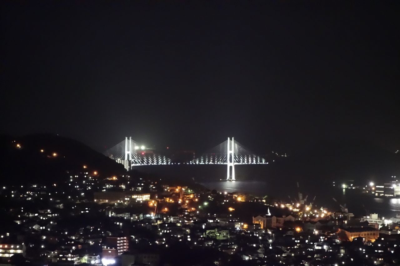 昼間もさることながら、夜もライトアップされて長崎の夜景に広がりを出しています。