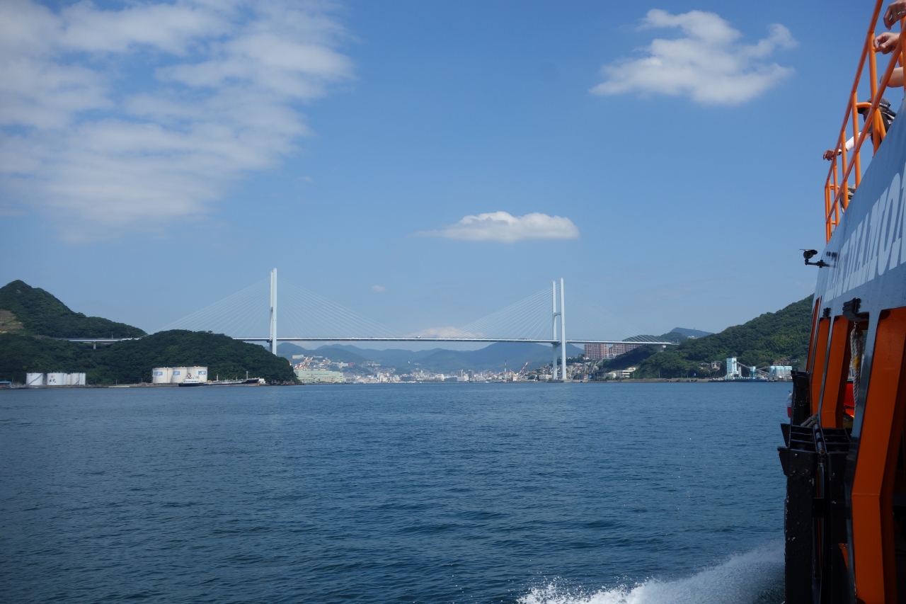 稲佐山の夜景観賞の後に女神大橋を通って帰りましたが、通るよりも遠くから見てるだけいいですね。昼間だったら市街地が見渡せてよかったのかも?