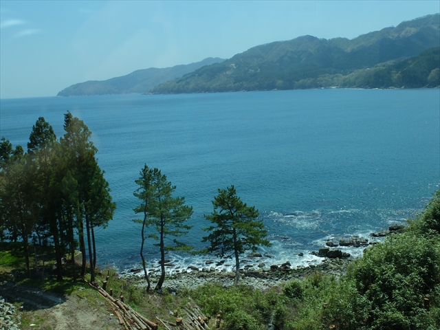 北リアス線と同じく山がちでトンネルが多いですが、合間に見える海がきれい。