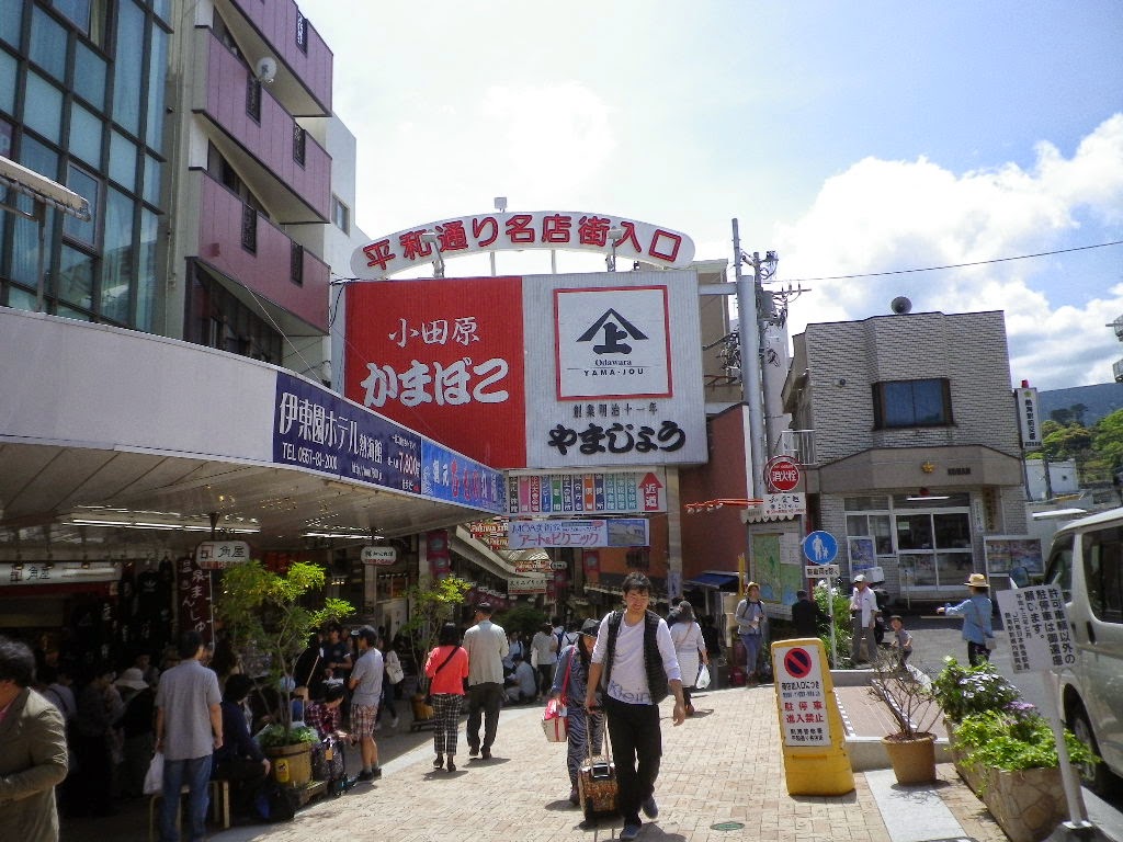 熱海駅前の商店街。改札を出て右手にあります。干物を扱う店や、温泉まんじゅうを扱う店が多く、いかにも温泉街の商店街といった雰囲気です。