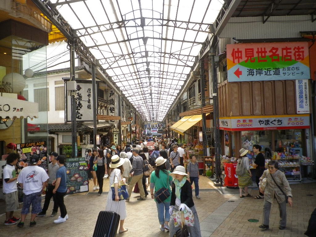 熱海駅の改札を出て右手にある商店街。お土産屋さんや飲食店が多くありました。平和通商店街とは横道でつながっれおり、いったりきたりできます。