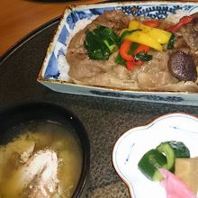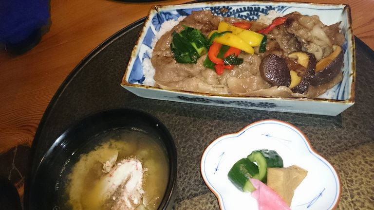ランチの「桔梗」は、メインの料理を選びます。ステーキ丼をお願いしました。薄いお肉ですがと説明受けましたが、かなり薄かったので驚きました。焼き肉丼です。味付けも…。他の料理は見た目もよく、味もよくおいしかったです。お会計時はフロアーに店員さんがいなかったので、調理場近くまで行って声をかけました。ランチ時は手薄になってしまうようです。