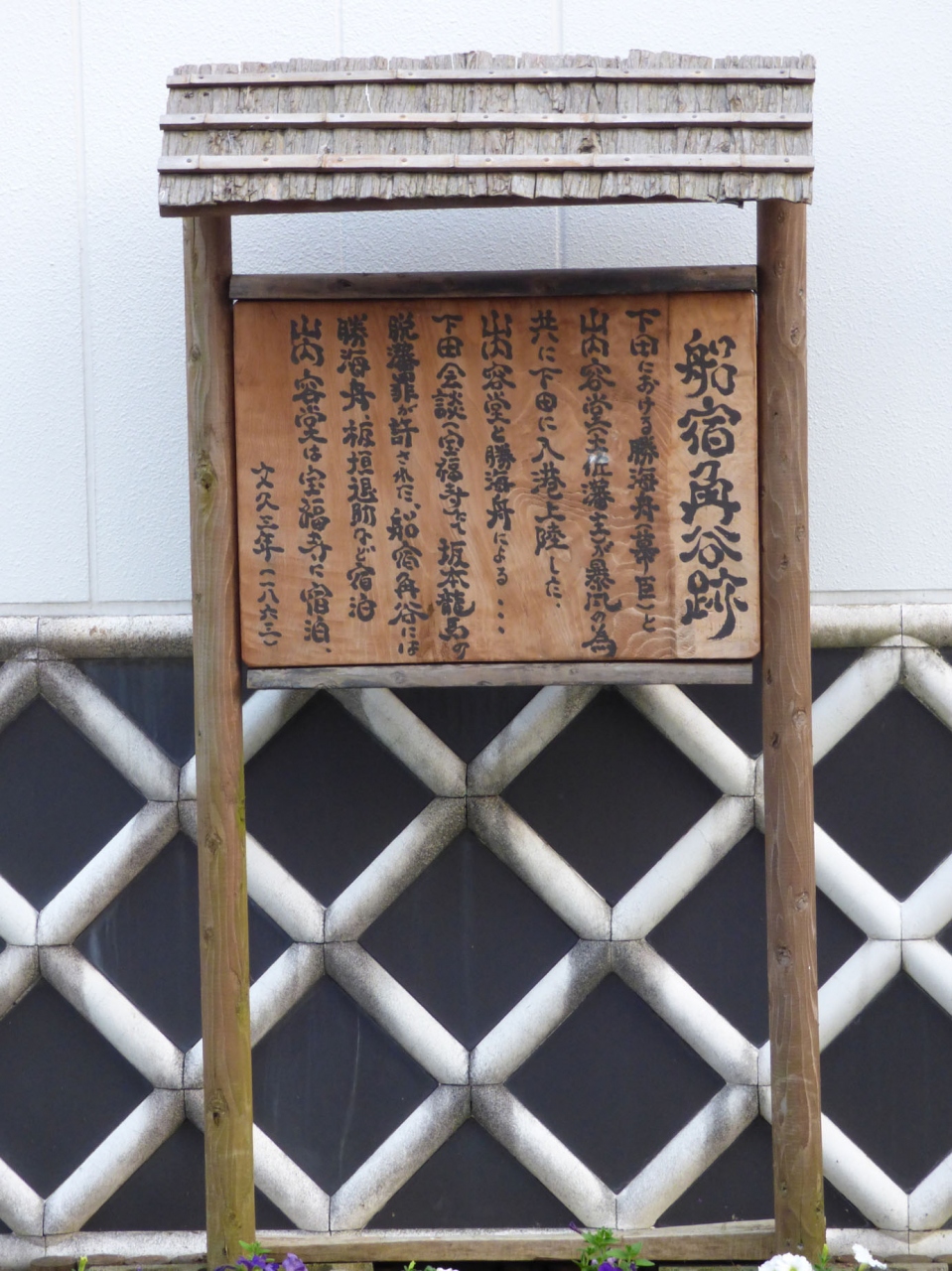 勝海舟が前土佐藩主山内容堂に拝謁し、坂本龍馬脱藩の罪の赦免を要請した1863年の「下田会談」にあたり、勝はこの地に宿泊した。山内容堂は、宝福寺に宿泊している。会談の結果、龍馬の罪は赦された。
