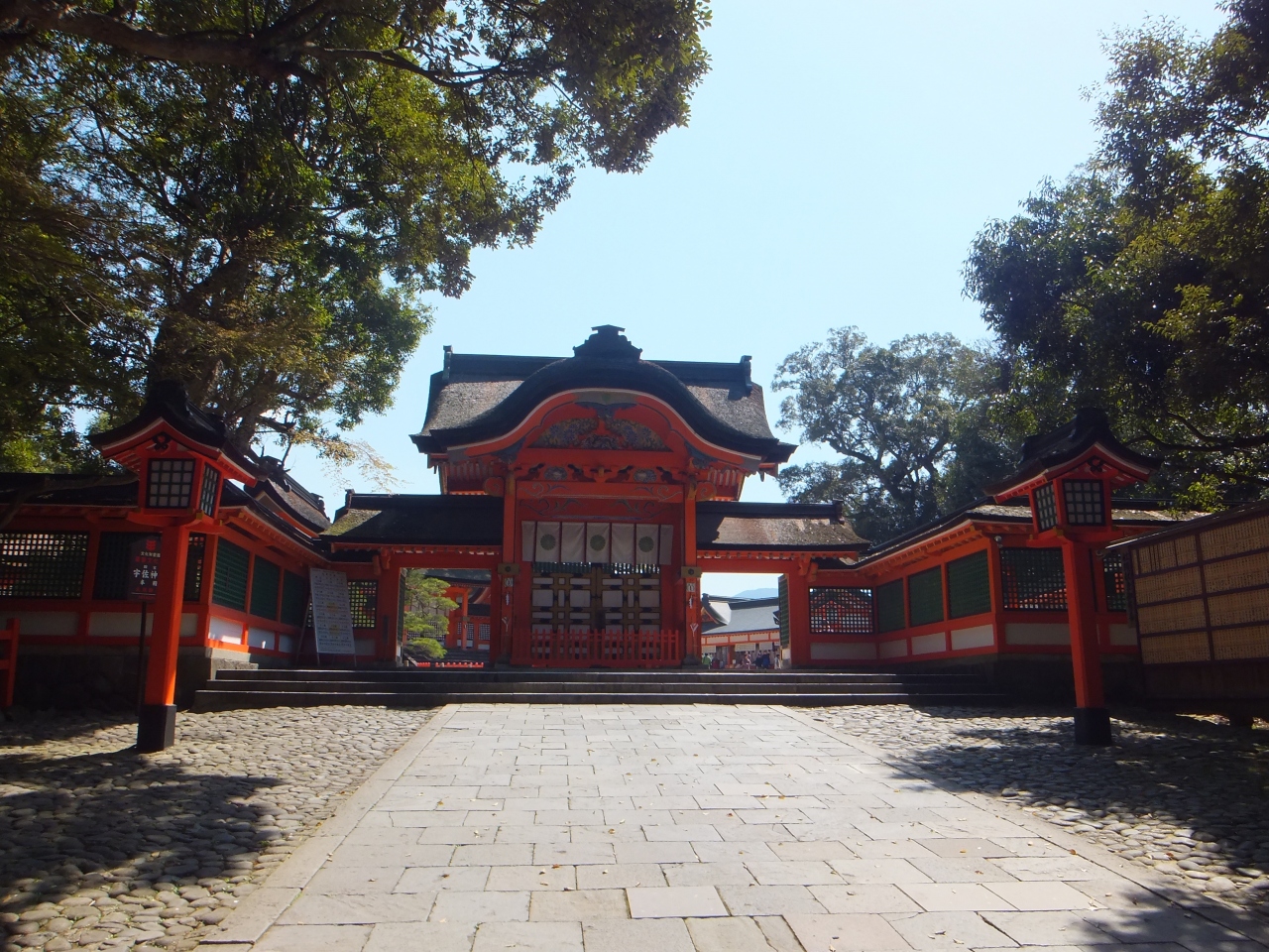 ガイドさん(有料)を事前にお願いして、ゆっくり2時間くらいかけて回りました。いろいろなお話が聞けて面白かったです。宇佐神宮の敷地はとても広く、途中の道は木々も多くて緑の中でちょっとした森林浴をしているようで気持ちが良かったです。