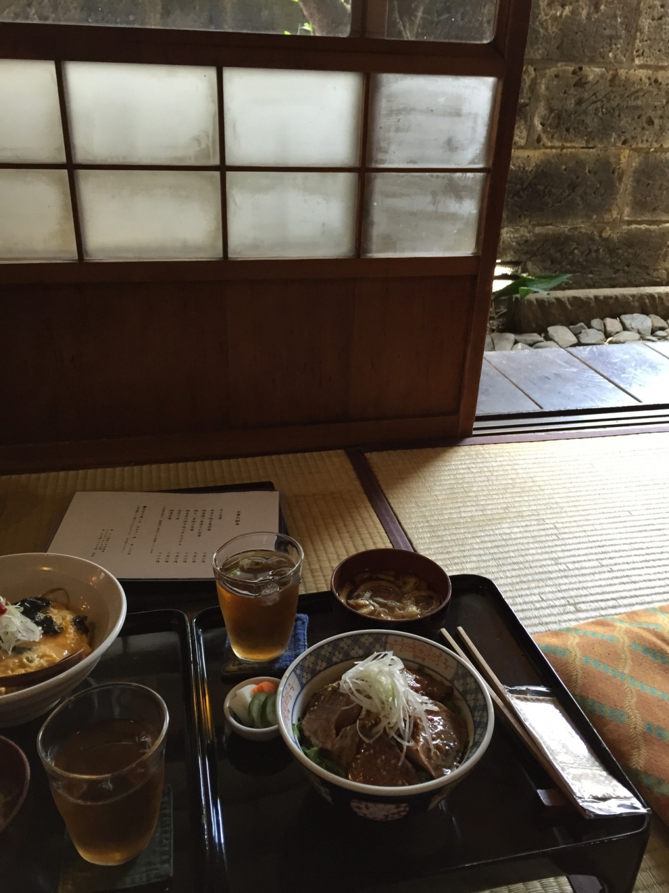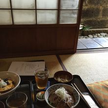 古民家で手軽なランチがいただけます。靴を脱いで、畳に座ります。メニューは丼物やオムライス等、6種類程から選べます。神楽坂で、この異空間で、1000円以内でランチが頂けるので、満足感はあります。味は普通です。ゆっくりとした時間が流れていました。