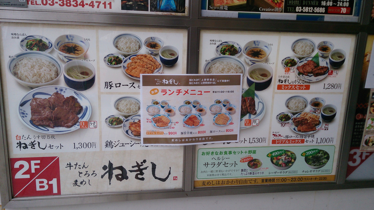 上野駅前にあるビルの2階と地下1階にあるねぎし。