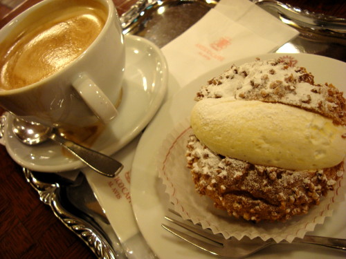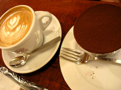 ラテとシュークリーム、それにカプチーノとティラミスをオーダーしてみました。
