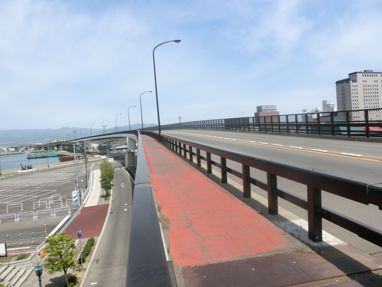 摩周丸から朝市へ向かう途中に、橋へ登るらせん状の歩道がある。