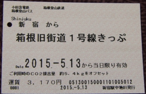 箱根旧街道・1号線きっぷを利用して箱根を周遊しました。新宿駅から小田原駅までの往復も含めて3,170円と割安です。小田原駅から恩賜箱根公園、元箱根から甘酒茶屋、甘酒茶屋から元箱根港、元箱根港から蓬莱園、小涌谷駅からホテル前、宮ノ下温泉から温泉場入口と箱根登山バスを利用しましたがすべてこのきっぷでOKです。伊豆箱根バス(西武系)ではこのきっぷ利用出来ませんのでご注意ください。