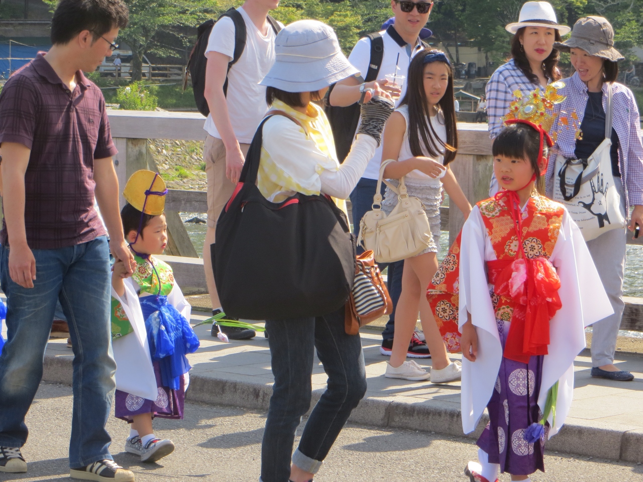 京都の観光ガイドブックでは紹介されることのない嵯峨祭ですが、5月のこの時期に京都を訪れる人がいたら是非お勧めします。愛宕神社と野宮神社、嵯峨野の地元のお祭りではあるのですが、見事というしかありません。今年は稚児行列と子供みこしを見ることができました。祇園祭の鉾の前身と言われる剣鉾も見事。音が素晴らしい。