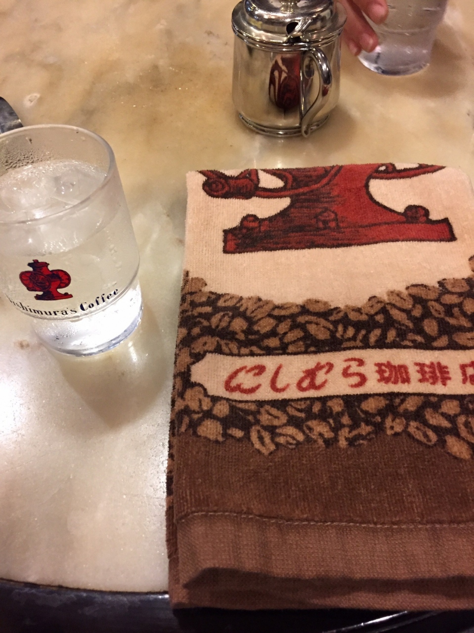 人気のモーニングを注文し待っていると、店の名前が入ったタオルを持って来てくれました。