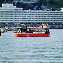 船内にエレベーターを設置するなど、バリアフリーに配慮した客船ですが、上下船はバリアフルです。