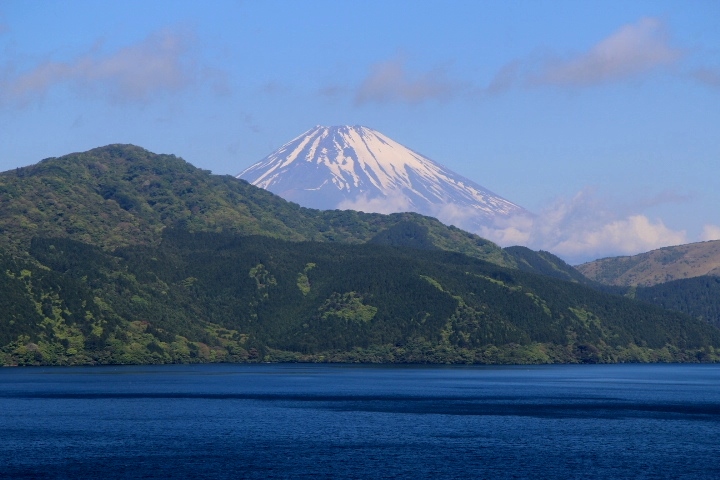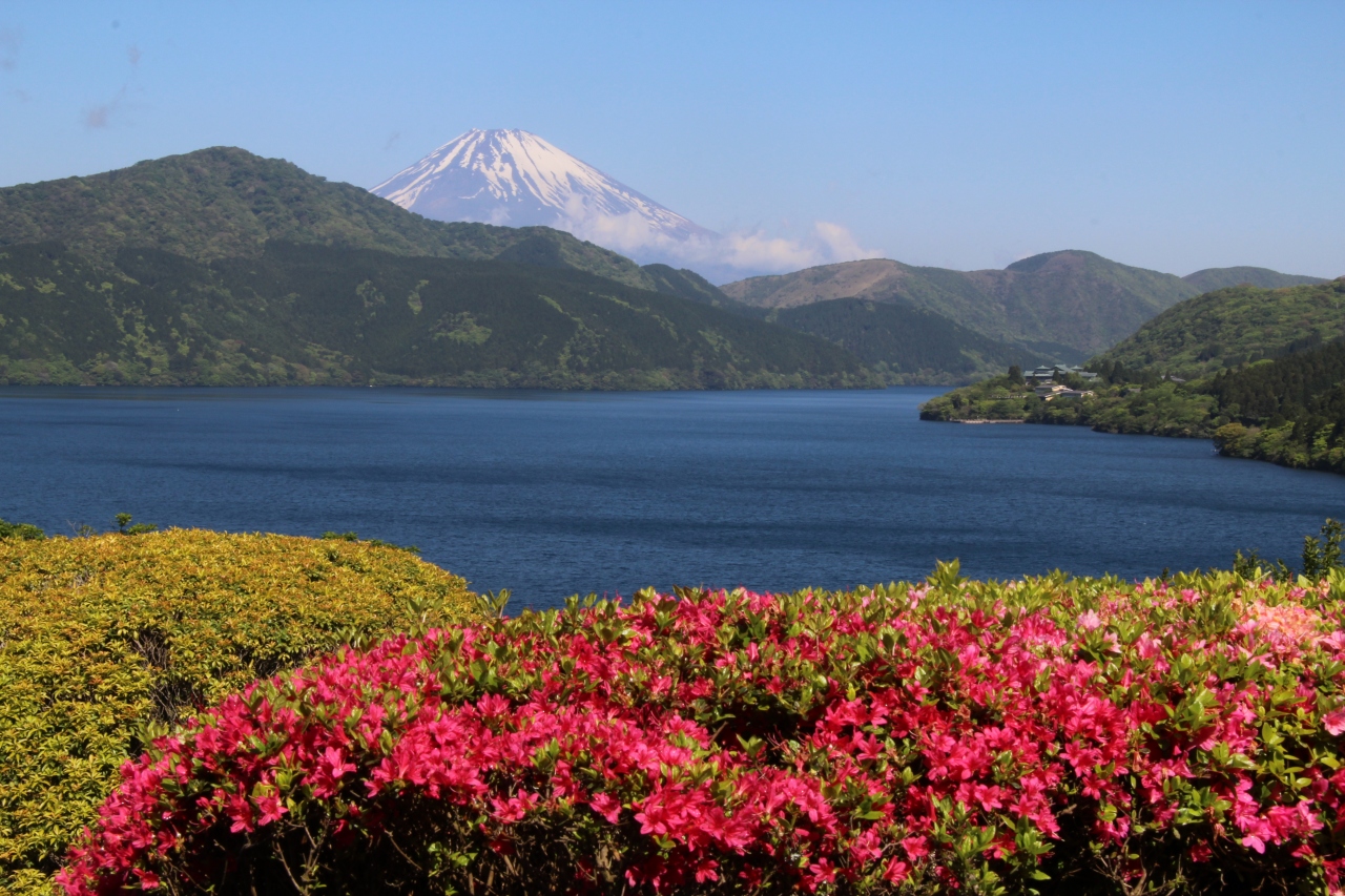 箱根の「小田急 山のホテル」にツツジを見に行った際芦ノ湖畔に立ち寄りました。この日は風が強く富士山を覆っていた雲が流され綺麗に富士山と芦ノ湖の共演を見ることが出来ました。恩賜箱根公園の弁天の鼻展望台、元箱根港あたりの湖畔からの景色がいいと思いました。