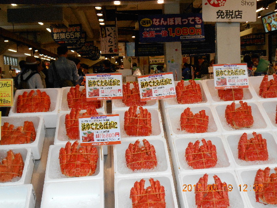北海道の魚介類を売っている店がいっぱいです。