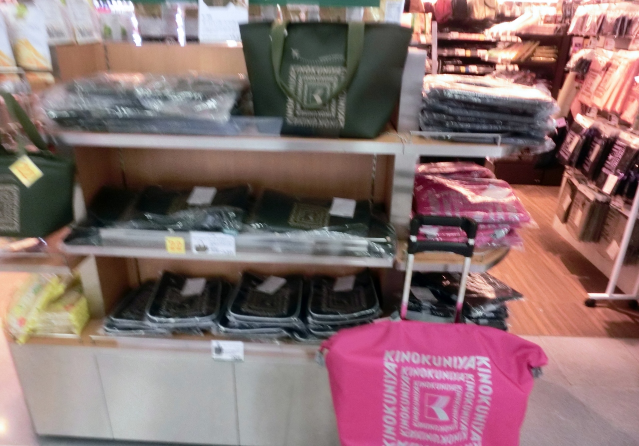トレードマークの緑色のずだ袋が有名だが、田舎への土産かな、ピンク色もあったよ。