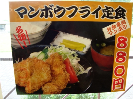 ここは土産物や、海産物、弁当などがかなり豊富にある道の駅である。ここはぜひ休憩することをおすすめしたい。お食事処ではマンボウフライが食べることができ、定食を頼んだがアオサの味噌汁がつくなど、満足できるものだった。