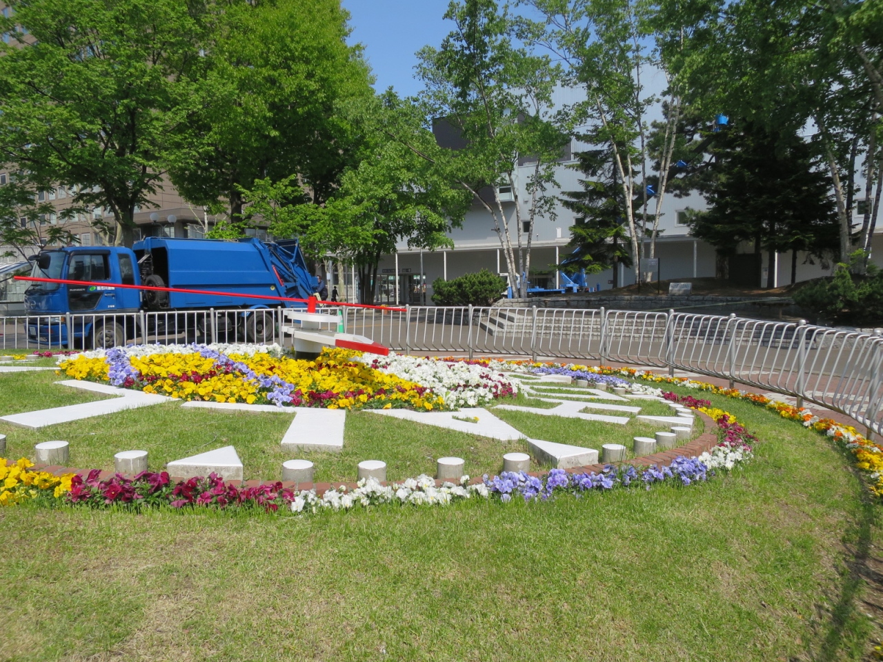 なお、大通公園の6丁目にも周囲にお花が植わった日時計があります。