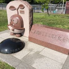 象の鼻パークの開港の丘、上部にひっそりと建てられています。これは横浜市が開国博Y150と題して開催した際のマスコットキャラクターです。そのことがこの記念碑に記載されていますが、当時は市役所内に沢山の埋もれたキャラクターがいる事で、問題になったこともあったようです。