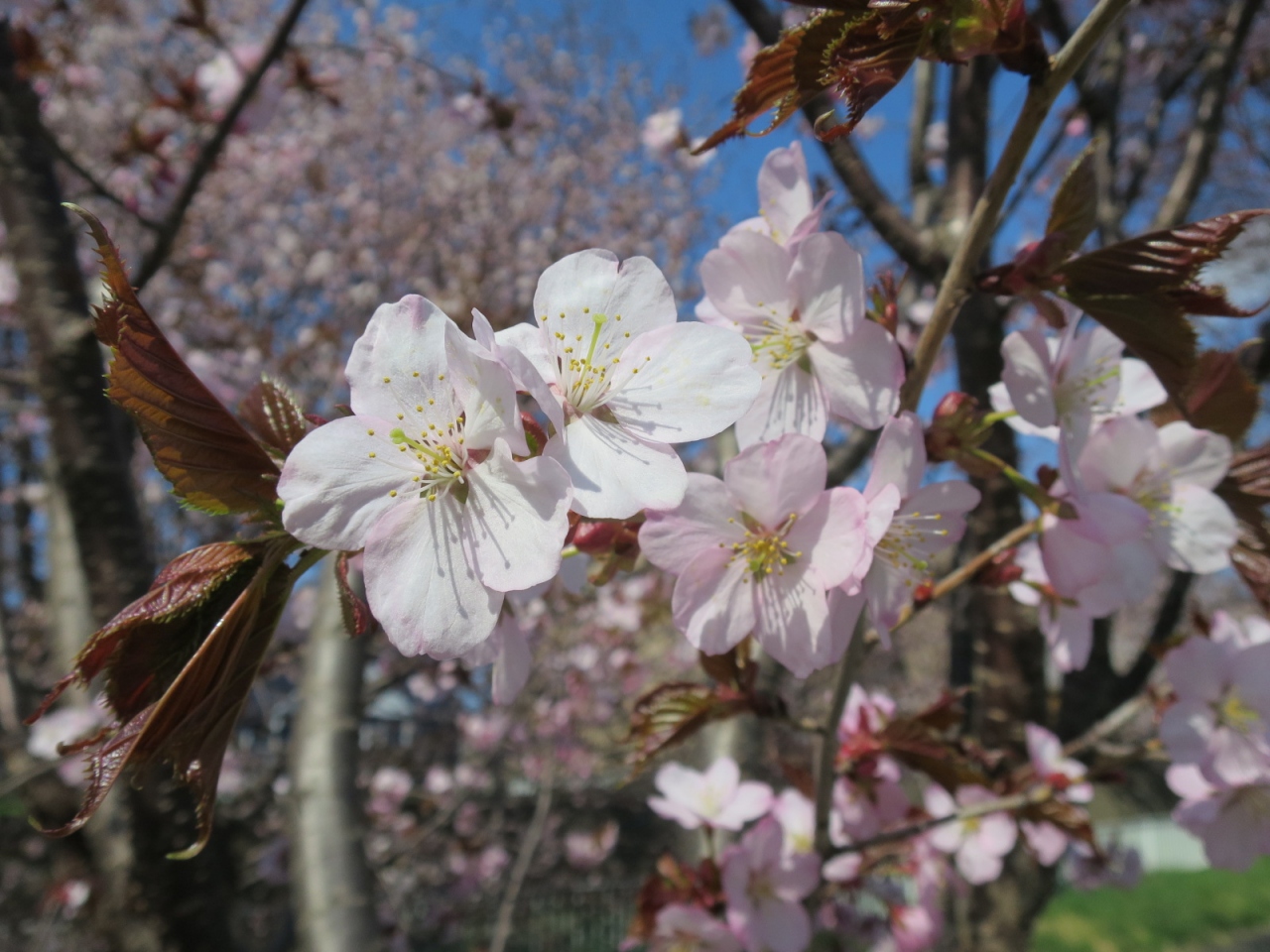 駅の近くで桜やミズバショウなど