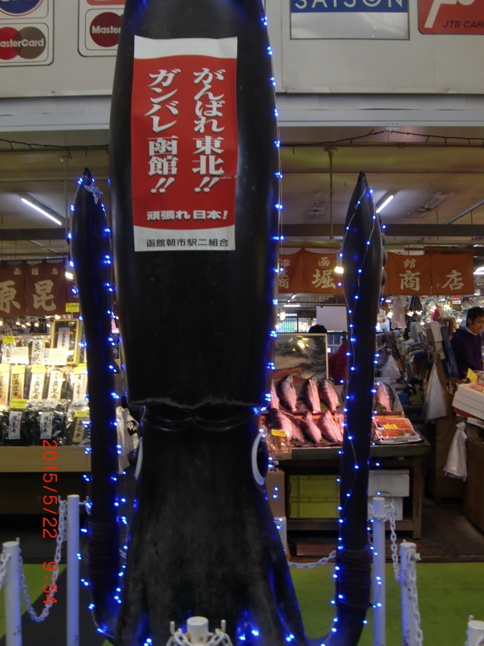 ベイエリアのホテルの朝食バイキングの後、運動がてら朝市へ。せっかくの函館なので新鮮なイカを食べなきゃ損と思いイカ釣をすることに。ところが、本日イカ釣はお休みの張り紙が!で代わりにエビ釣との事。イカ釣が出来ない日があるなんて知らなかった!!新鮮な透き通るイカを食べられなくて残念でした。