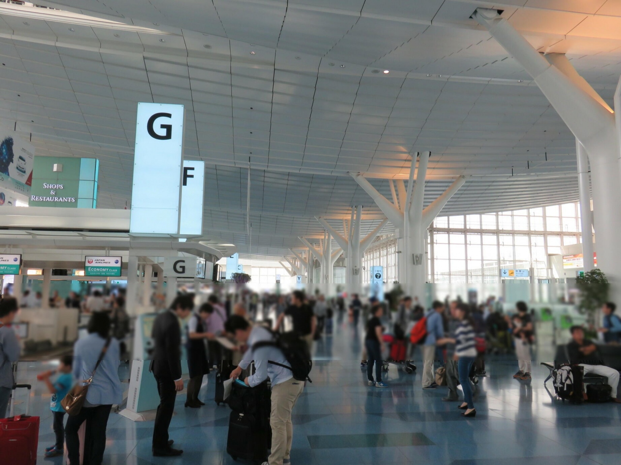 今回もJAL利用なのでカウンターH辺りの写真を撮りました。で、出国ゲートの脇にある「みずほ銀行」で両替を考えたのですが、人が多くて並ぶ気になりませんでした。両替が此処だけの訳が無いと思い、1Fに下りて行ったら、此方にも「みずほ銀行」が有りました。人の並びが違います。出国ゲートも2箇所あり、JALのチェックインが多かったので、反対側から入りました。此方も人が少なかったです。場所を選ぶと時間短縮になりますね。