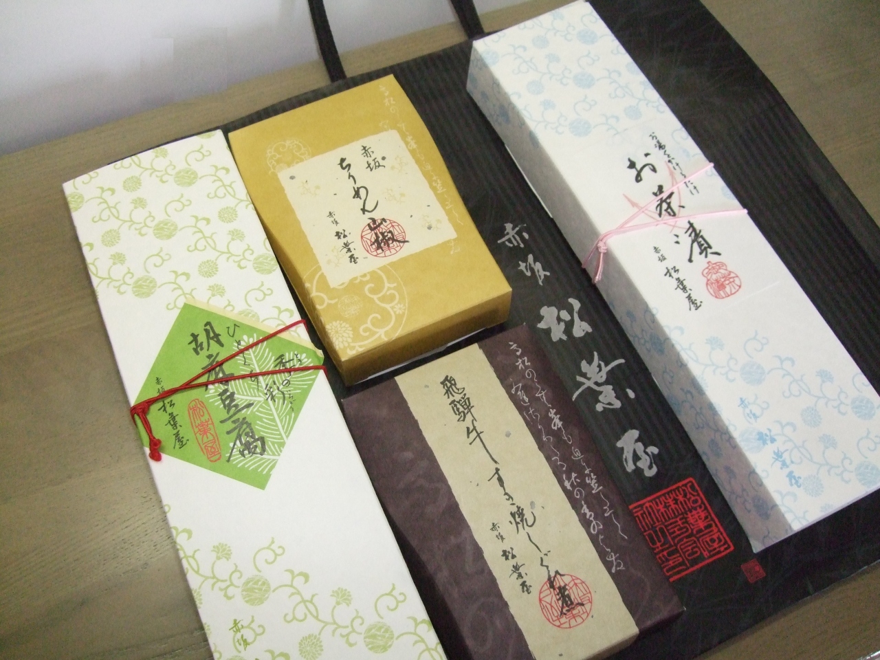 牛肉しぐれやちりめん山椒は有名ですが、それ以外にも、お茶漬けの具と薬味のセット、各種胡麻豆腐などもとても美味しいです。胡麻豆腐には柚子味噌が付いていて、それを付けないのと、付けるのと、二度味を楽しめます。