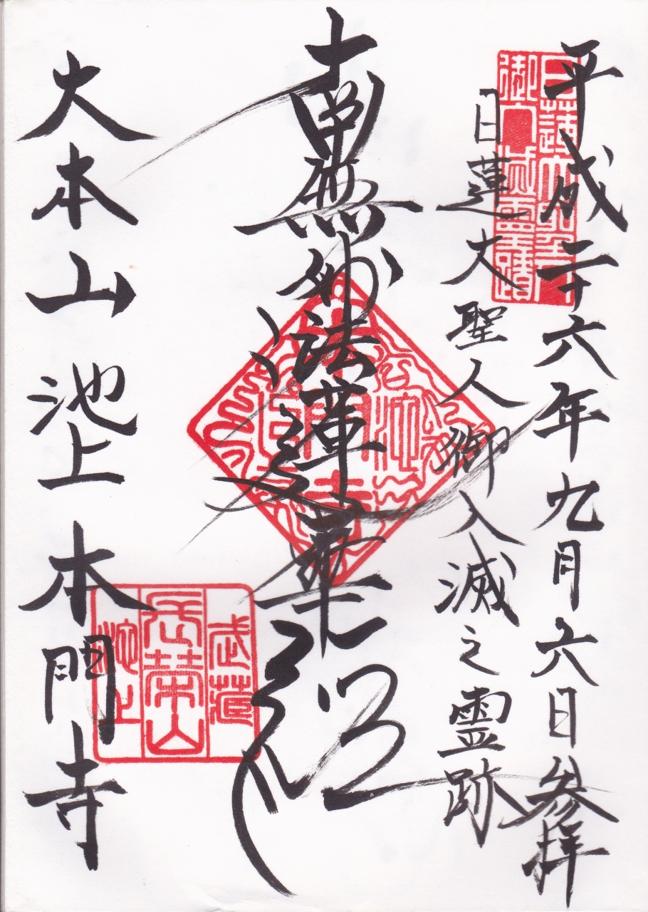 1282年病身の日蓮は身延山を出て、湯治のために常陸(茨城県)へ向かうが、途中武蔵国池上郷の池上宗仲の館に到着。生涯最後の20数日間を過ごすこととなる。この池上氏館の背後の山上に建立された一宇を日蓮が開堂供養したのが池上本門寺の起源だそうです。