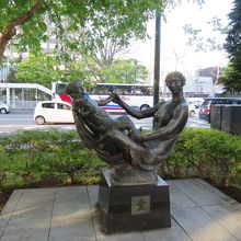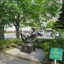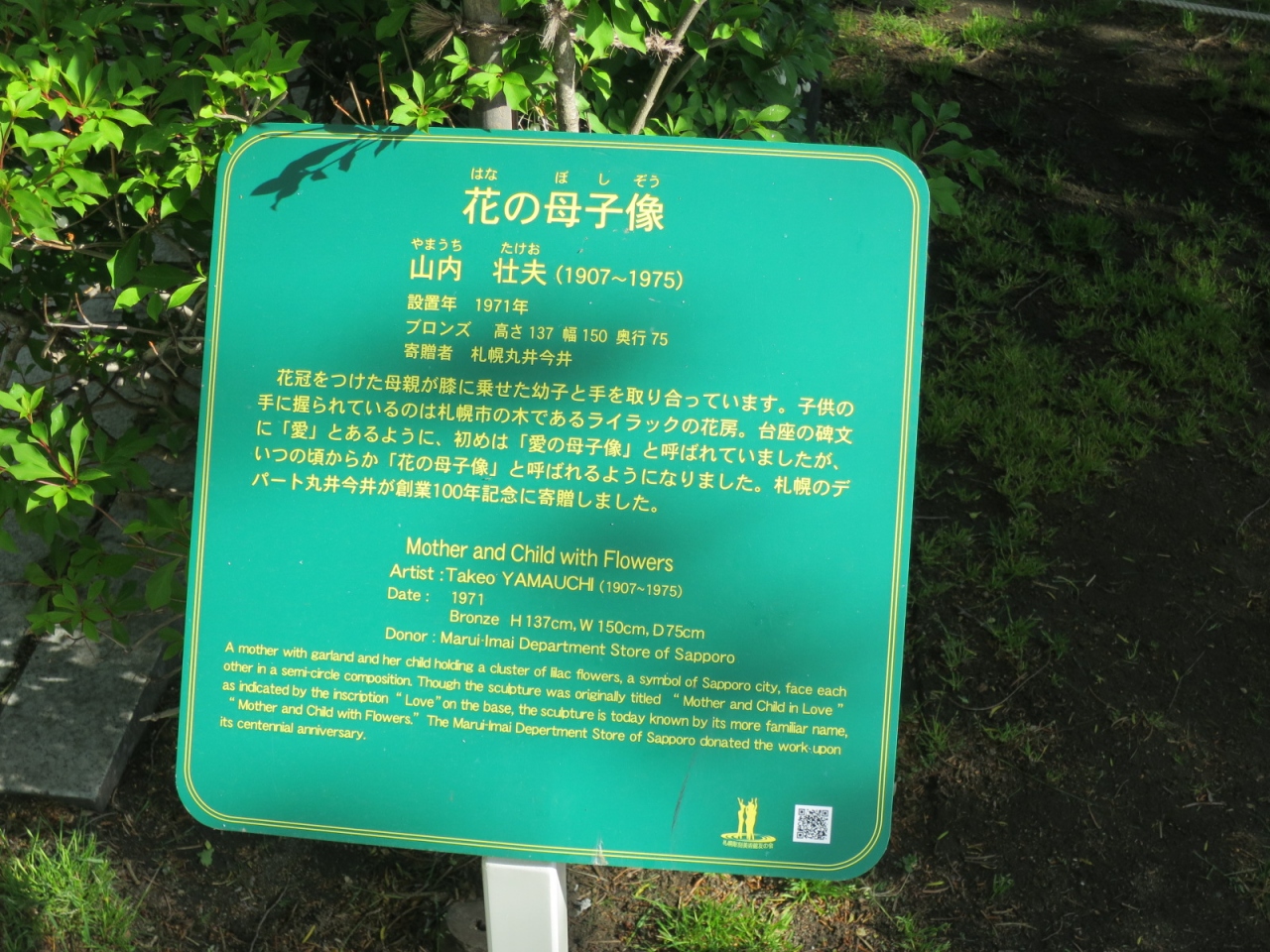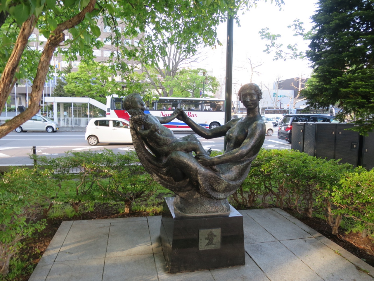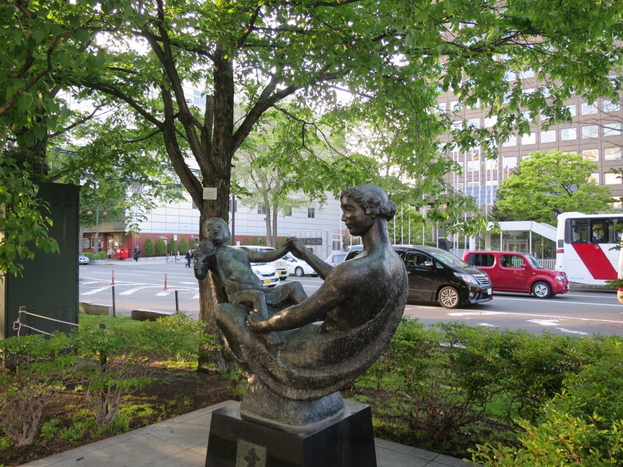 このブロンズ像も南側にあるデパート、丸井今井が1971年に創業100周年を記念して寄贈した像であると隣の解説板に書かれていました。