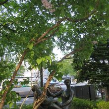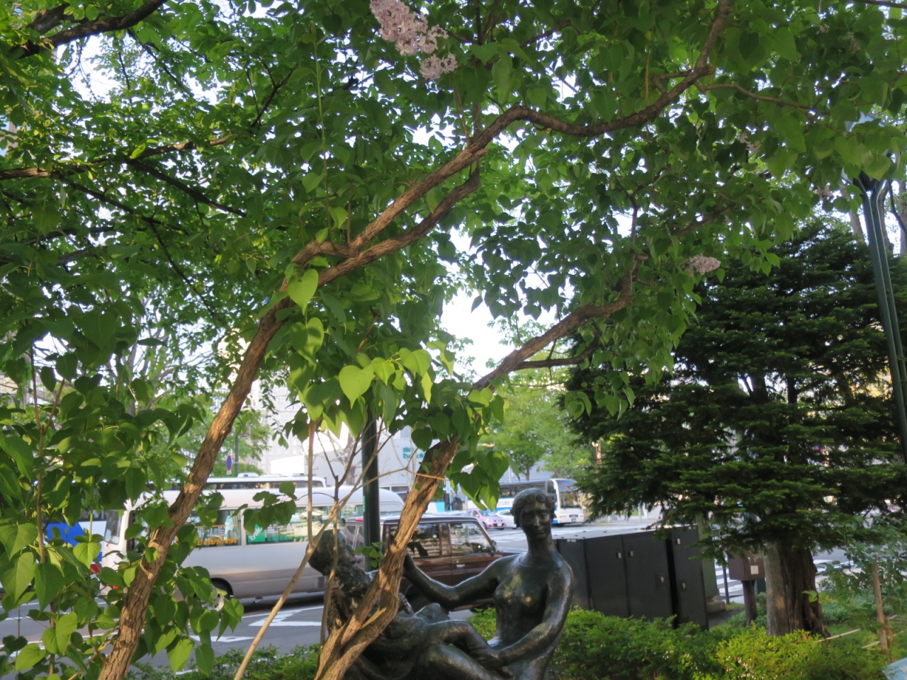 また、折角、”花”の像なのに、周囲の木々は花が少ないです。目立たない花のハルニレや、ライラックも花付きの悪い若木が植わっていました。辛うじてドウダンツツジの花が背の低い位置に咲いていました。