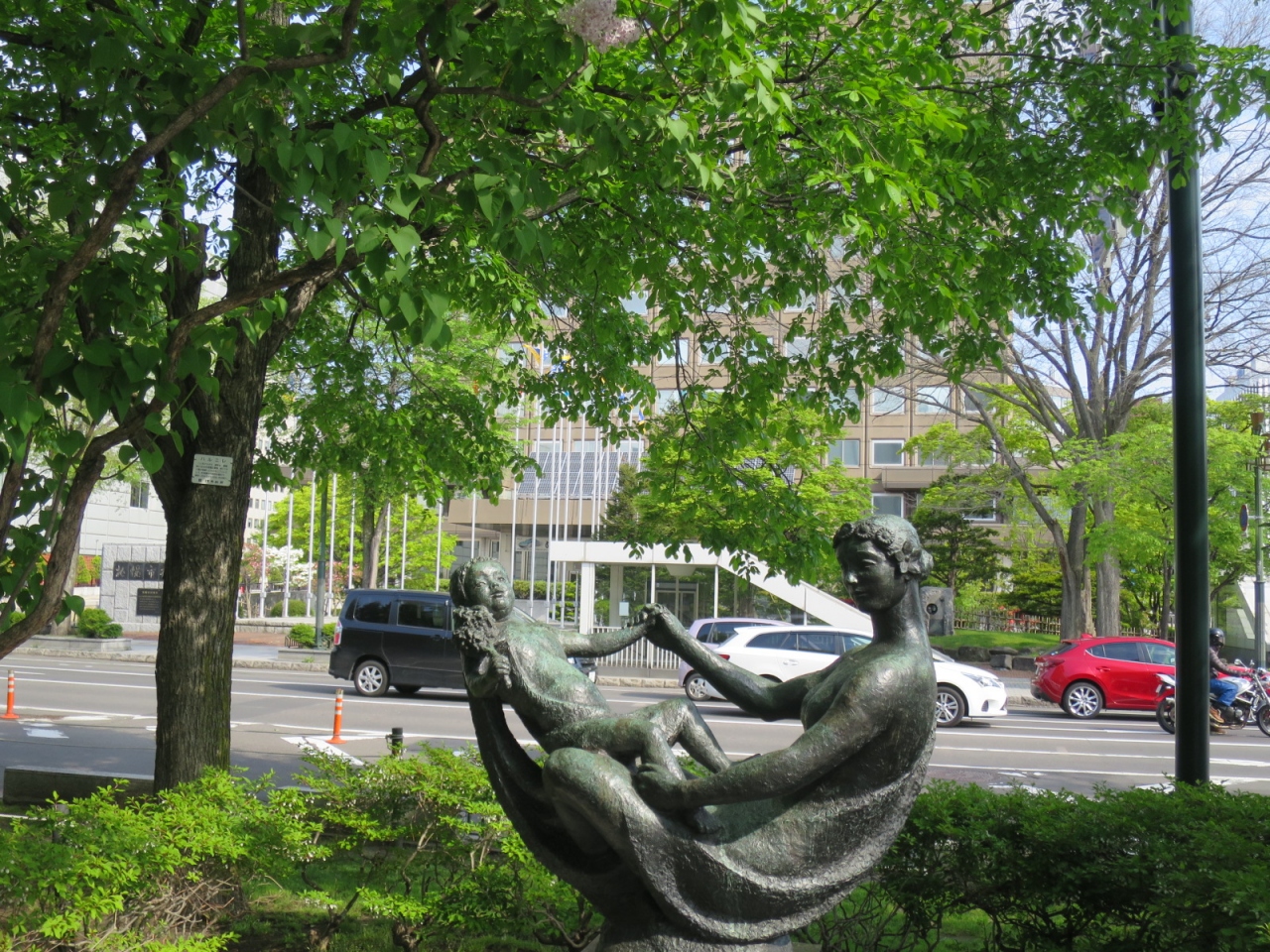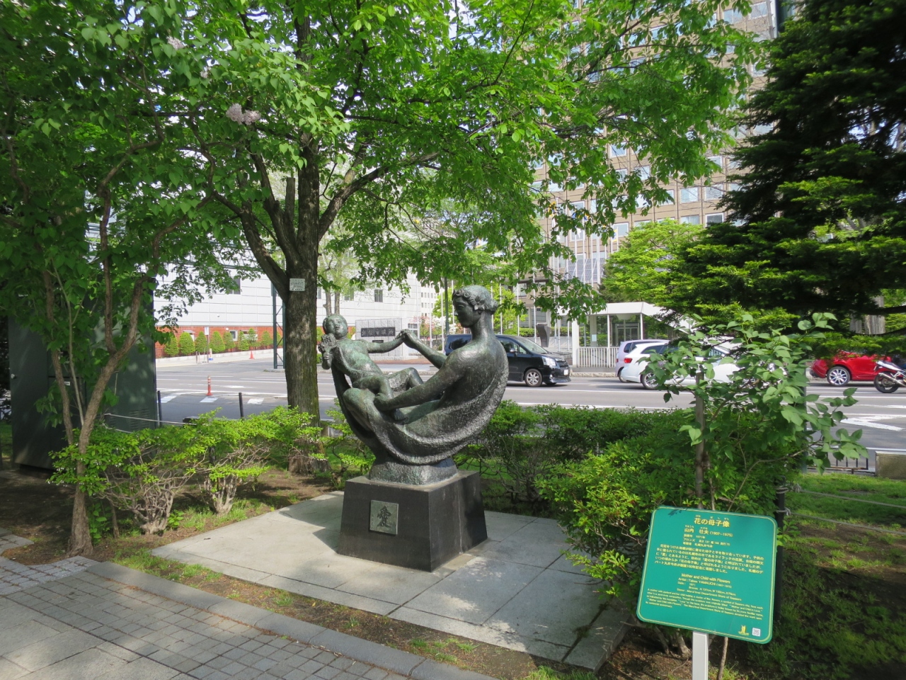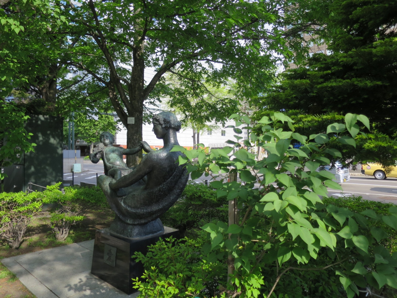 大通公園には各所に銅像が配置され、中には公園の周囲にある企業が寄贈したものもあります。