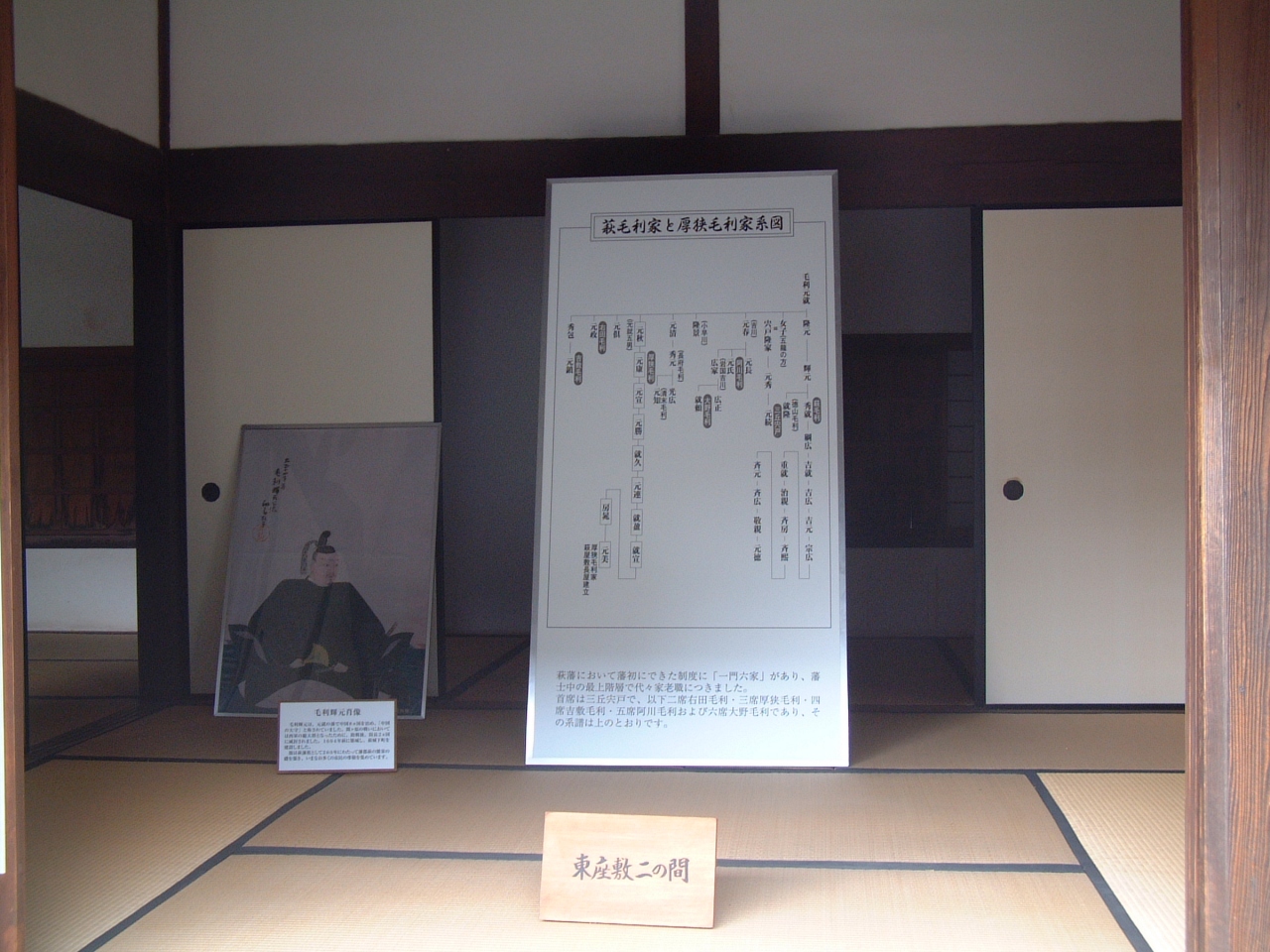 旧厚狭毛利家萩屋敷長屋は、萩市に現存する武家屋敷長屋では最大のもので、国の重要文化財に指定されています。外からの見学ですが、当時の武家の生活がわかるような気がしました。屋根は、入母屋造りの本瓦葺だそうです。部屋がたくさんあり、かなりの武士が利用していたように思います。部屋には、観光客の為に毛利輝元の肖像・3本の矢のお話し・萩城下町の絵図などの展示もしてくれていました。しかし、昔の武士は質素だったように感じました。